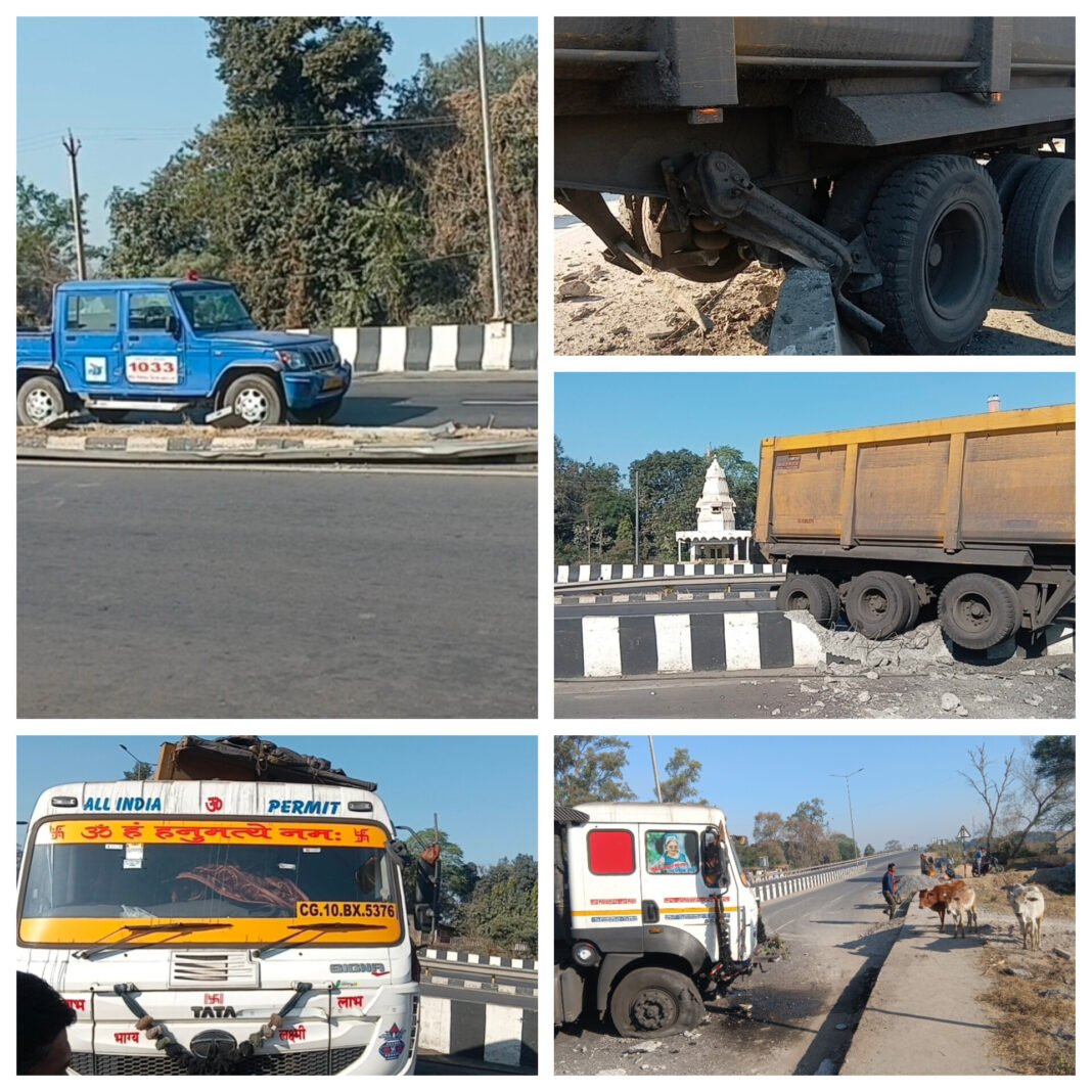 कोरबा–चांपा मुख्य मार्ग पर ट्रेलर का तांडव, लापरवाही से दोहरी रेलिंग तोड़ते हुए विपरीत दिशा में घुसी