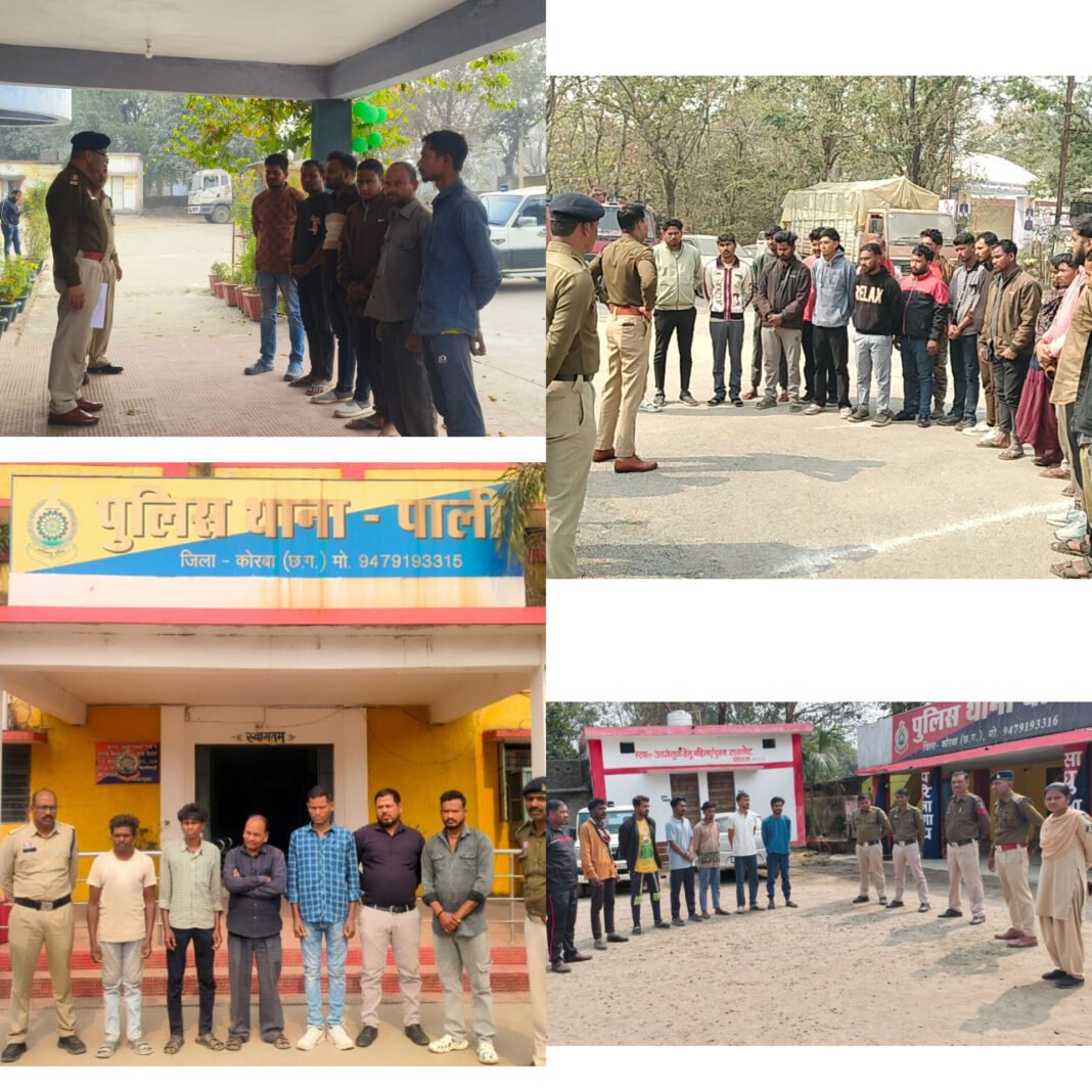 कोरबा पुलिस की बड़ी कार्रवाई – लूट व डकैती के मामलों में रिहा आरोपियों की थाना-चौकियों में परेड