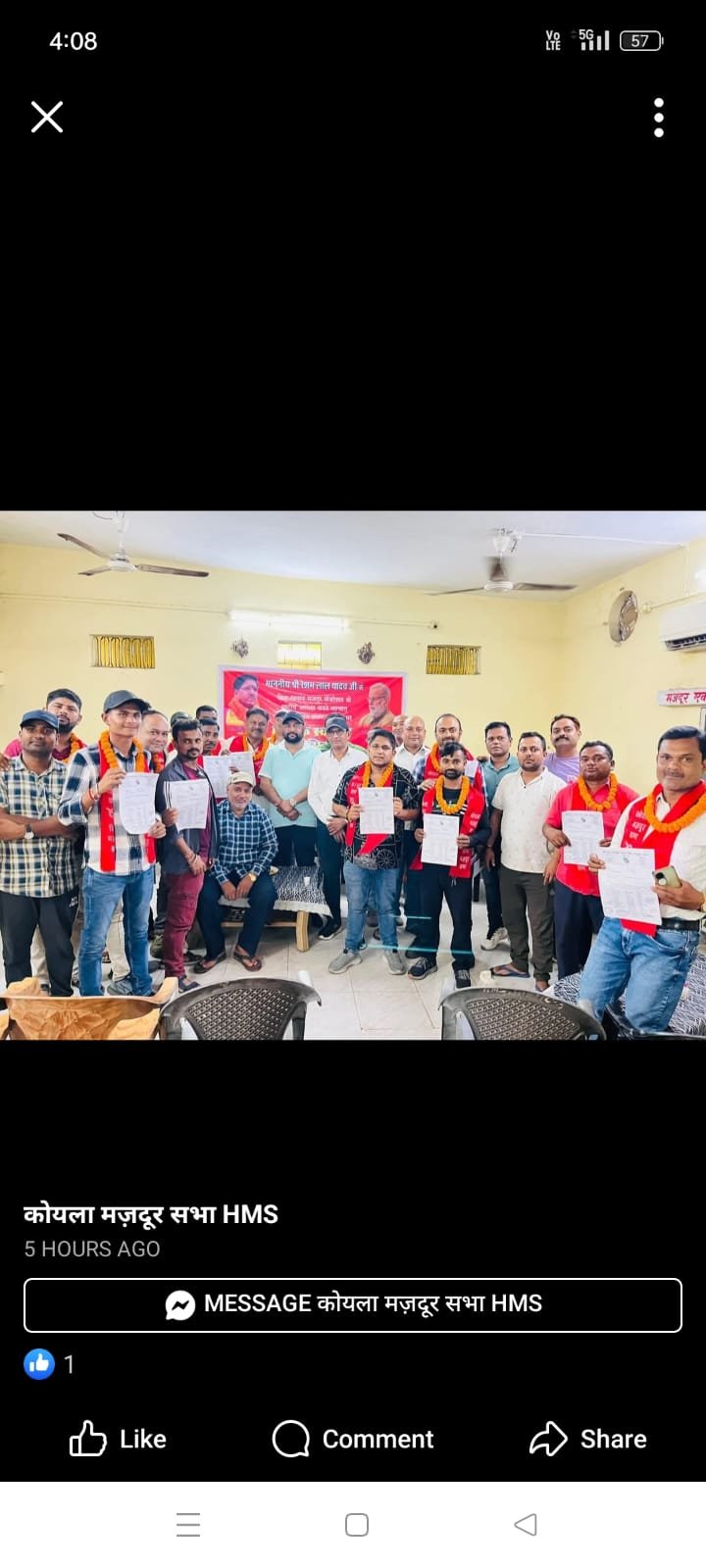 *एचएमएस कुसमुंडा में वर्तमान मेंबरशिप एवं यूनियन के वर्चस्व को बनाए रखने के लिए कुसमुंडा परियोजना के नए बॉडी का गठन दिनांक 21 सितंबर 2025 को क्षेत्रीय एच एम एस कार्यालय कुसमुंडा क्षेत्र में क्षेत्रीय पदाधिकारी के उपस्थिति में कुसमुंडा बॉडी के नवनियुक्त पदाधिकारियों का नोटिफिकेशन किया गया जिसमें श्री रामेश्वर वैष्णव( डंपर ऑपरेटर) को परियोजना के अध्यक्ष एवं श्री देवेंद्र सिंह (ओवरमेन) को परियोजना सचिव के पद पर नामित किया गया*