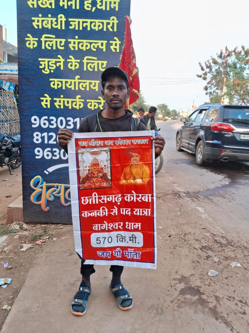 राजेश ने कनकी से बागेश्वर धाम तक की लगभग 570 किलोमीटर की कठिन पैदल यात्रा पूरी की।