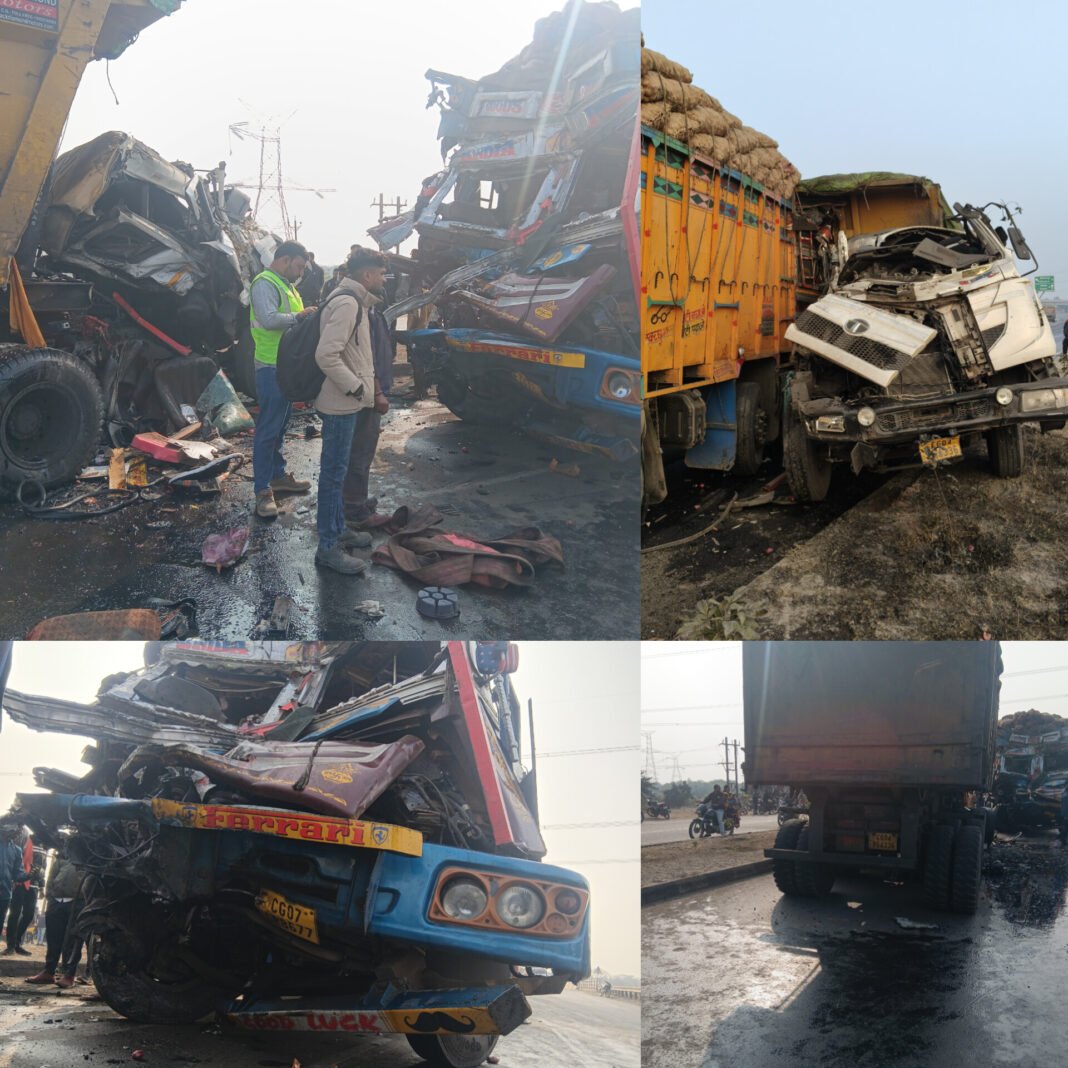 कोरबा–चांपा मुख्य मार्ग पर ग्राम पंचायत पटाढ़ी के पास मंगलवार को एक भीषण सड़क दुर्घटना हो गई। कोरबा की ओर से आ रही ट्रेलर क्रमांक CG04 PG 4336 कथित रूप से रॉन्ग साइड में चल रही थी। इसी दौरान उसकी आमने-सामने टक्कर चांपा की ओर से आ रही प्याज से लोड डाला बड़ी क्रमांक CG07 CR 8677 से हो गई।