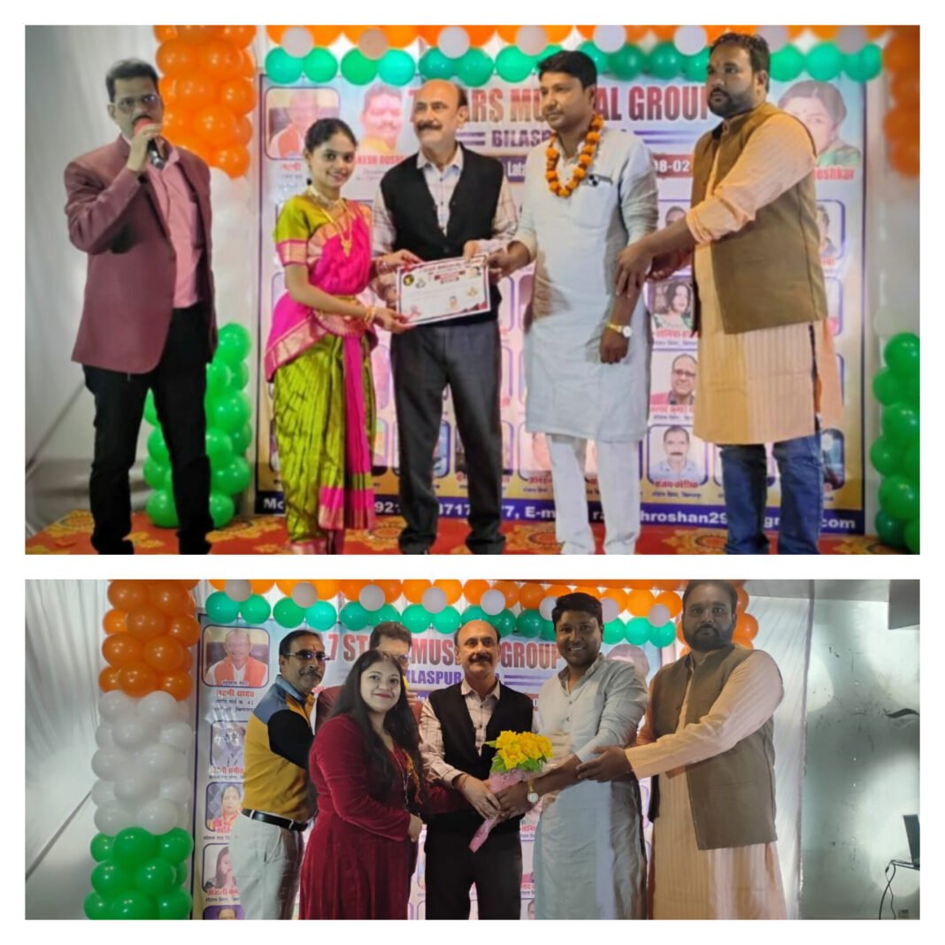 बिलासपुर। भारत रत्न से अलंकृत स्वर कोकिला स्वर्गीय लता मंगेशकर जी की पुण्यतिथि के अवसर पर 7 स्टार म्यूजिकल ग्रुप, बिलासपुर द्वारा एक निजी भवन में भव्य संगीतमय कार्यक्रम का आयोजन किया गया। कार्यक्रम में कोरेको म्यूजिक के माध्यम से छत्तीसगढ़ के विभिन्न क्षेत्रों से पहुंचे गायक कलाकारों ने लता जी के अमर और सदाबहार गीतों की शानदार प्रस्तुतियां दीं। मधुर सुरों की सरिता में डूबकर उपस्थित श्रोता और संगीत प्रेमी मंत्रमुग्ध हो गए।