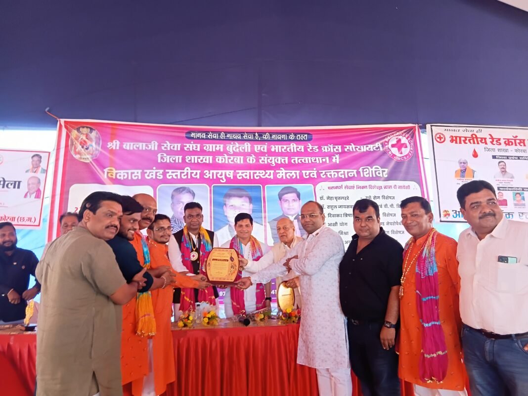 छत्तीसगढ़ शासन के आयुष विभाग के दिशा-निर्देश और जिला प्रशासन के सहयोग से श्री बालाजी सेवा संघ एवं भारतीय रेड क्रॉस सोसायटी के संयुक्त तत्वावधान में ग्राम बुंदेली में विकासखंड स्तरीय आयुष स्वास्थ्य मेला और रक्तदान शिविर का भव्य आयोजन किया गया।